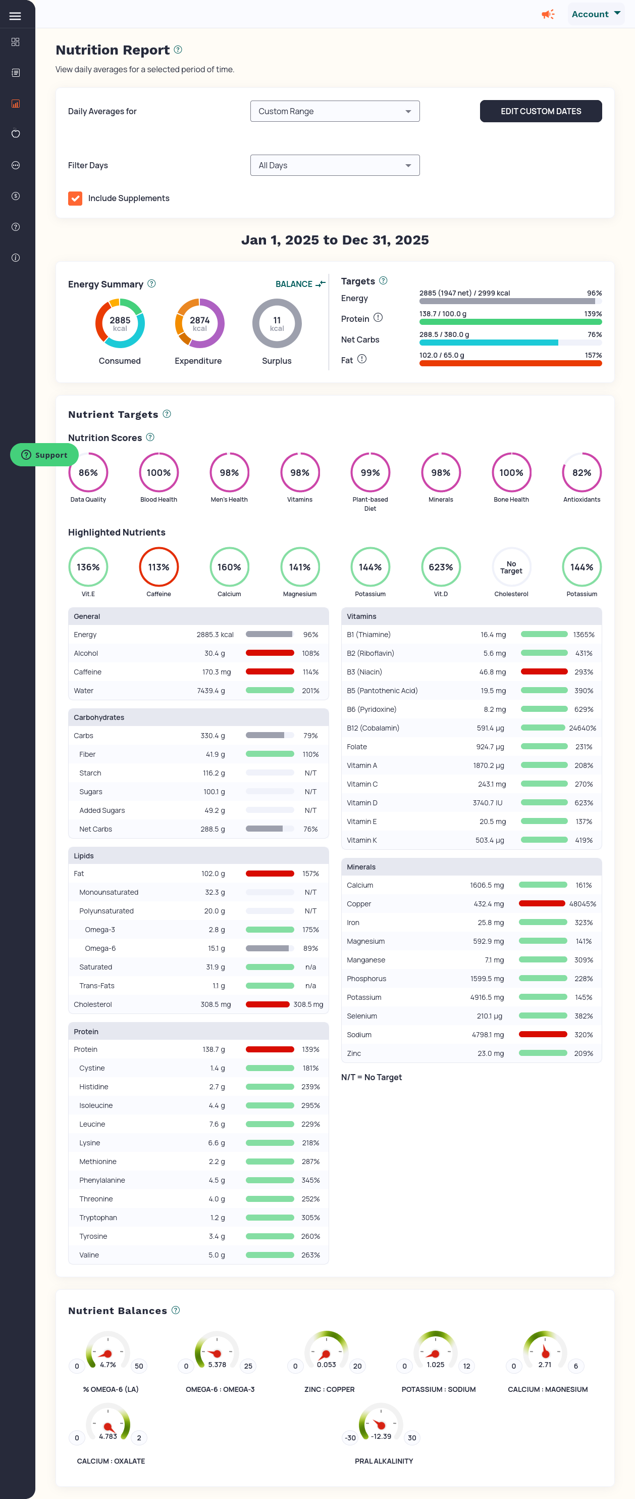 - From a macro/micronutrients perspective things were very dialed in again. Without supplementation I only had a slight deficiency in the usual two vitamins: Vitamin D and Vitamin E. With supplementation via a multi-vitamin and Vitamin D drops things were well within limits.